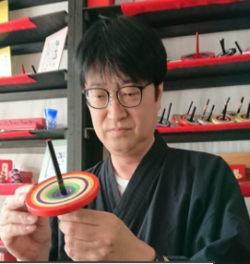 Mr. Yoshiyuki Nakamura is an artisan creating kyo-koma – traditional Japanese Kyoto style spinning tops, which were introduced to Japan in the Asuka period.