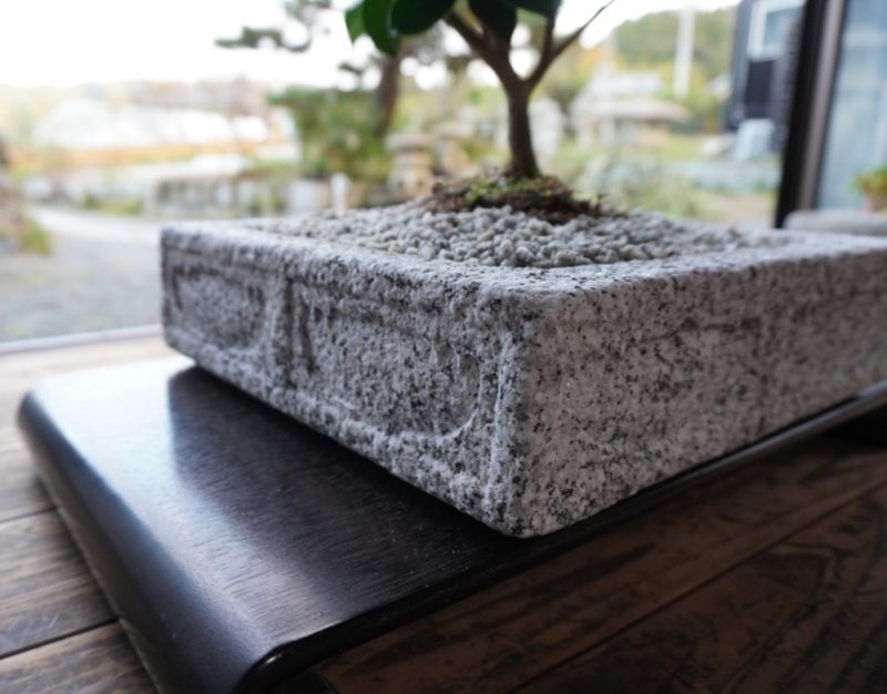 No, not only stone lanterns. As a craftsman who is proud of his craft and tradition, I want to make people more interested in these arts of stone carving therefore I decided to create something else. For example, a wine cooler with masonry technology, bonsai pot, table Lantern, and kouzama is a type of decoration used for sculpture pedestals.