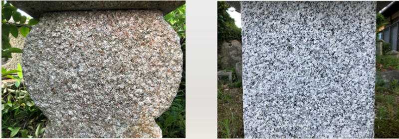 Nowadays we use some types of stone. First one is called Kako-gan, rather popular type in Japan. It is a crystalline stone, formed from underground magma that has cooled and hardened deep within the earth’s crust. It is hard, resistant to weathering, heavy, and has a low water absorption rate compared to other stones. This durable and “strong stone” feature has been used since ancient times for signposts, stone torii gates and stone walls.