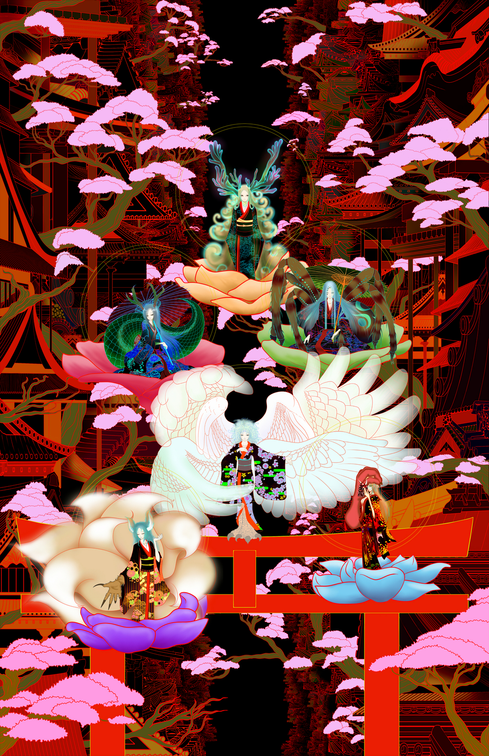 Ryuemon is an illustrator and space designer based in the Kanto Prefecture. His inspiration comes from Japanese folklore and traditions, expressed through a dream-like view of the world. Each drawing is very detailed and carefully put together to translate a vision unique to Japan.